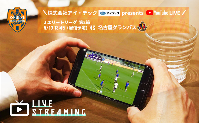 エスパルスは、5月10日(月)に行われる2021 Jエリートリーグ Aグループ第2節 名古屋グランパス戦において、『株式会社アイ・テック presents YouTubeライブ』を実施しますので、下記の通りお知らせいたします。