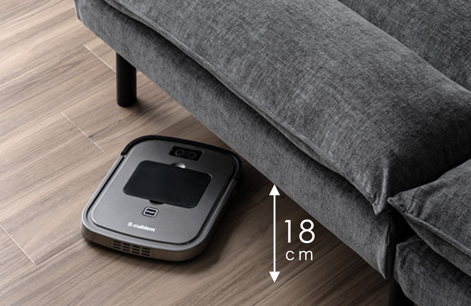 ロータイプの時は小さなお子様やペットがいるご家庭でも落下の心配がなく安心してご使用いただけます。通常脚の状態では高さが18cmで、お掃除ロボットが通れる高さになっており、お掃除も楽に行うことができます。