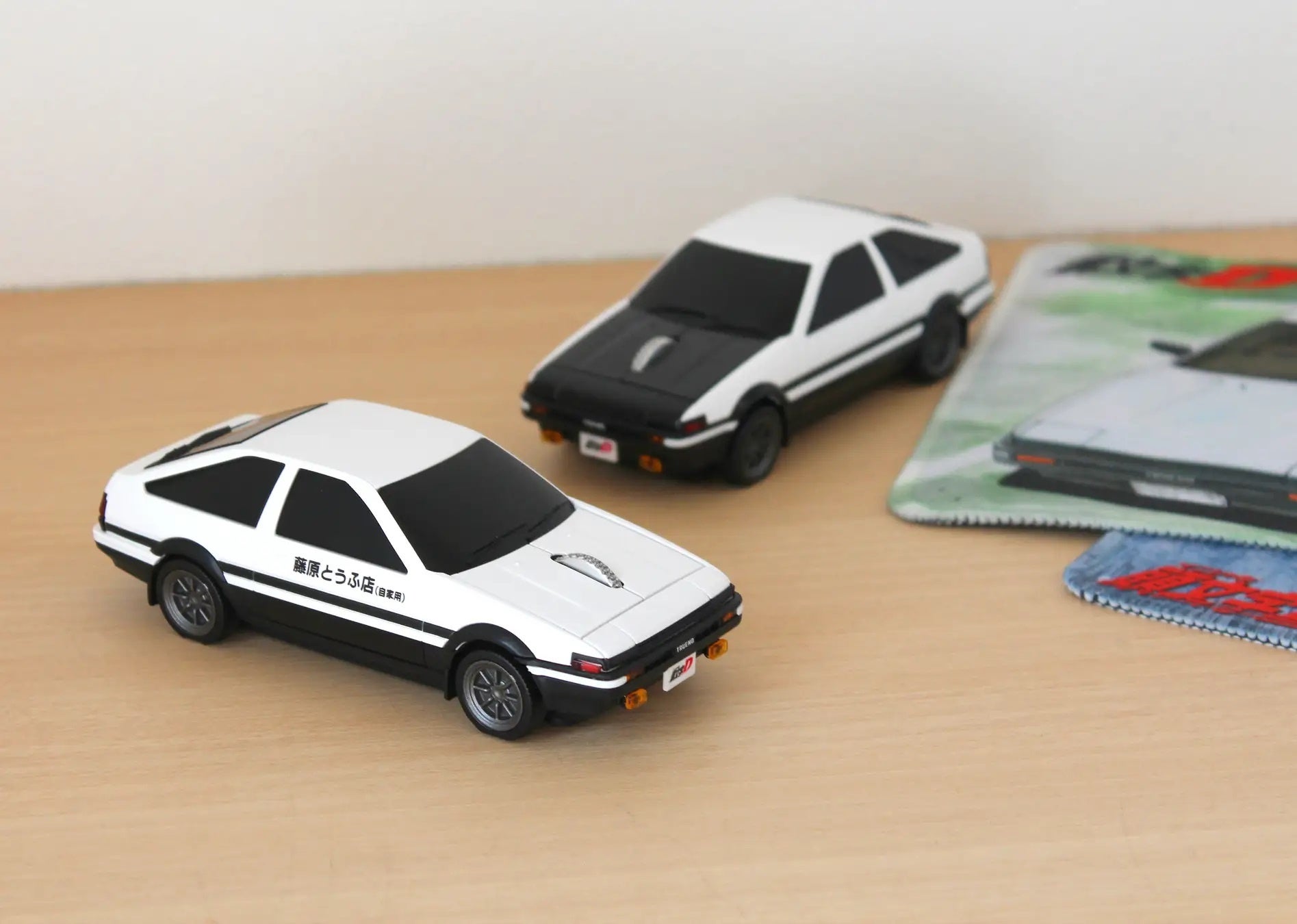 ラインナップは前期版、ブラックボンネットの後期版の2種類で、主人公の藤原拓海が作中で運転するAE86の車体を再現した無線マウスは、スイッチを入れることでヘッドライト・リアライトを点灯させることができます。