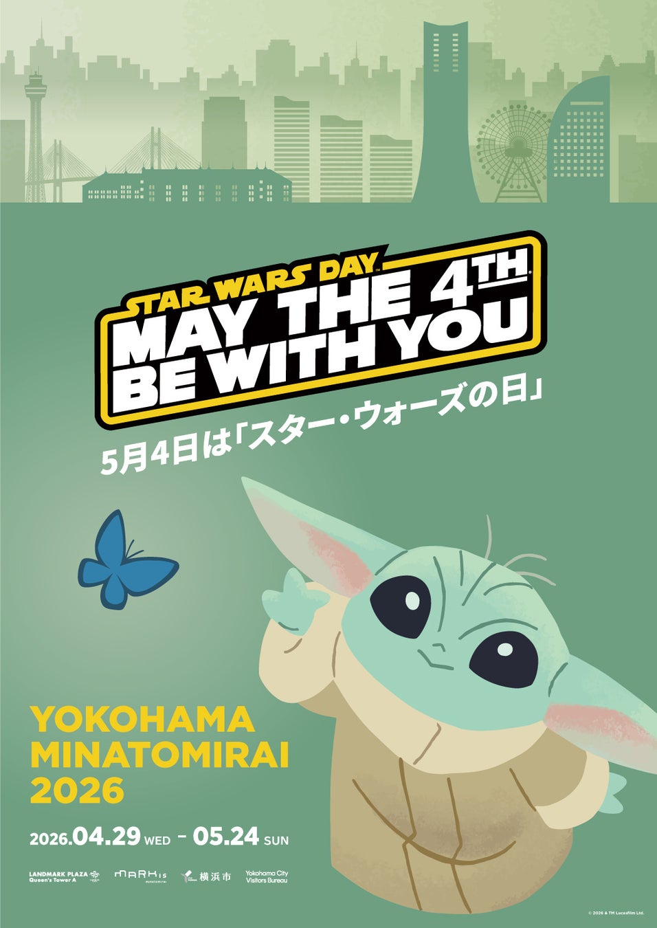 ランドマークプラザ、MARK IS みなとみらい(神奈川県横浜市/運営:三菱地所プロパティマネジメント株式会社)は、ウォルト・ディズニー・ジャパン株式会社の協力のもと、2026年4月29日(水・祝)~5月24日(日)の約1か月間、横浜・みなとみらいエリアにて、「STAR WARS DAY YOKOHAMA MINATOMIRAI 2026」と題したゴールデンウィークのイベントを実施いたします。1977年の映画全米公開以来、全世界を興奮と歓喜で満たし、社会現象を巻き起こし続けてきた空前のエンターテイメント「スター・ウォーズ」。今年は約7年ぶりの新作映画『スター・ウォーズ/マンダロリアン・アンド・グローグー』の公開を5月22日(金)に控える中、ゴールデンウィーク期間中の5月4日(月・祝)は、「May the Force be with you.(フォースと共にあらんことを。)」というスター・ウォーズの名台詞にちなんだ「スター・ウォーズの日※2」として記念日に制定されていることもあり、みなとみらいでの3回目の開催となる今年は、さらなる盛り上がりが期待されます。
