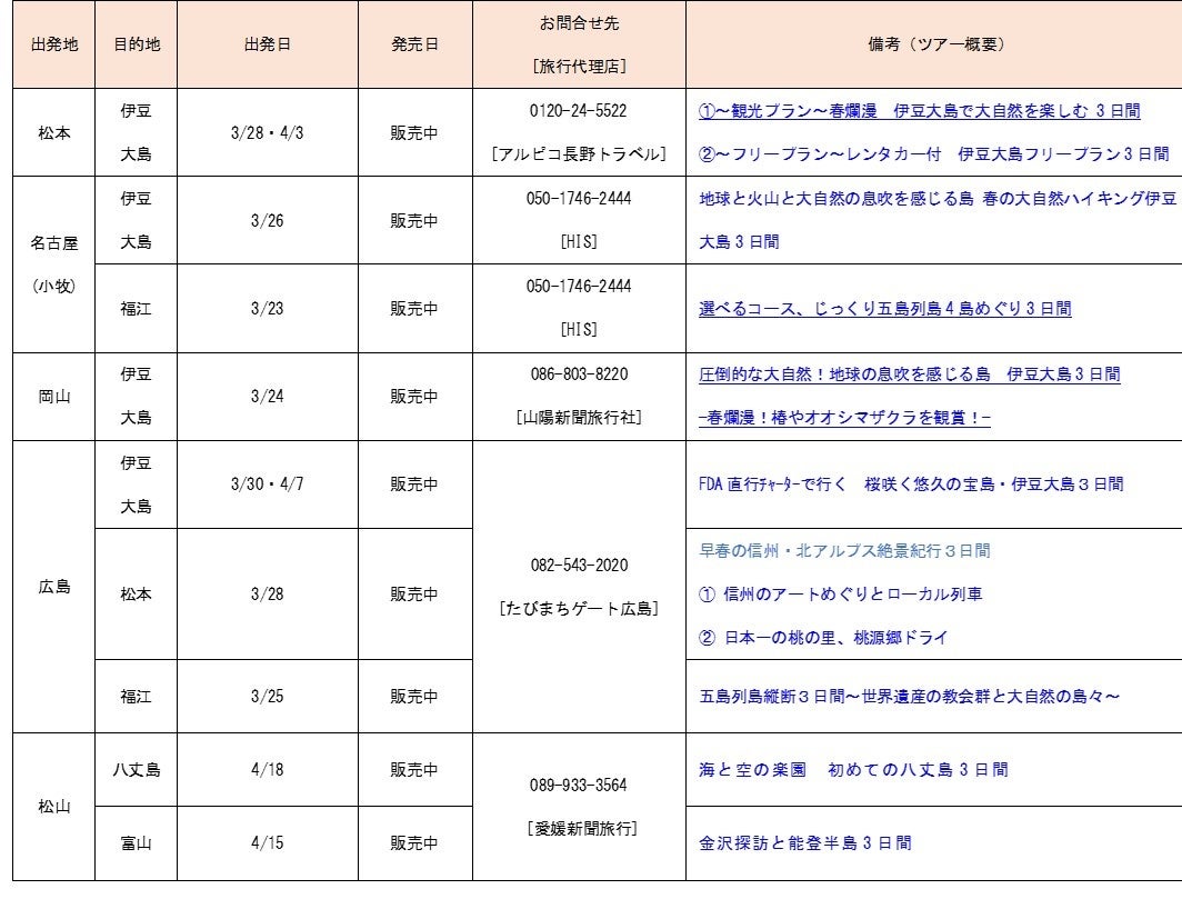 現在販売中の『チャーターツアー』、『遊覧フライト』について、お知らせいたします。