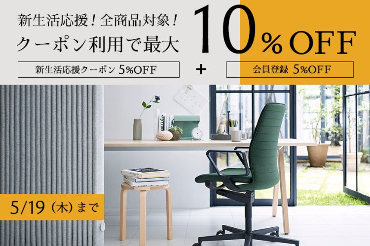 4月27日(水)~5月19日(木)の期間中、全品が10%OFF。さらに抽選で「コーヒー」や「デスクライト」、「スチーマー」をプレゼント