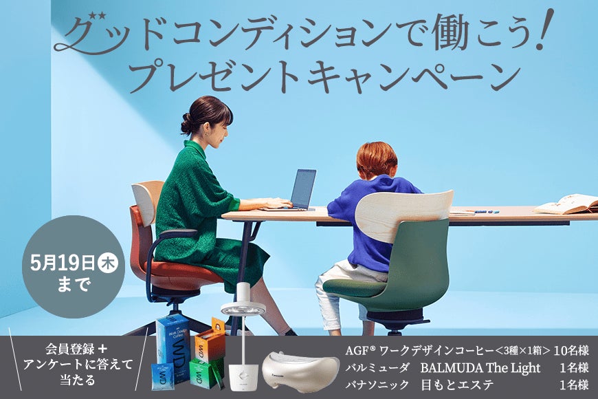 コクヨ株式会社(本社:大阪市/社長:黒田 英邦)は、4月27日(水)~5月19日(木)、公式ECサイト「KOKUYO Workstyle Shop(https://workstyle.kokuyo.co.jp/)」にて、グッドコンディションで働こう!プレゼントキャンペーンを開催します。