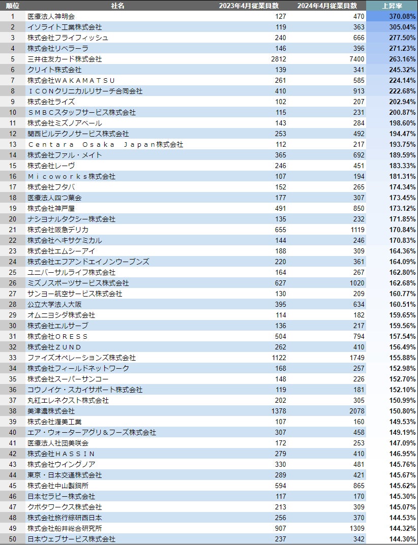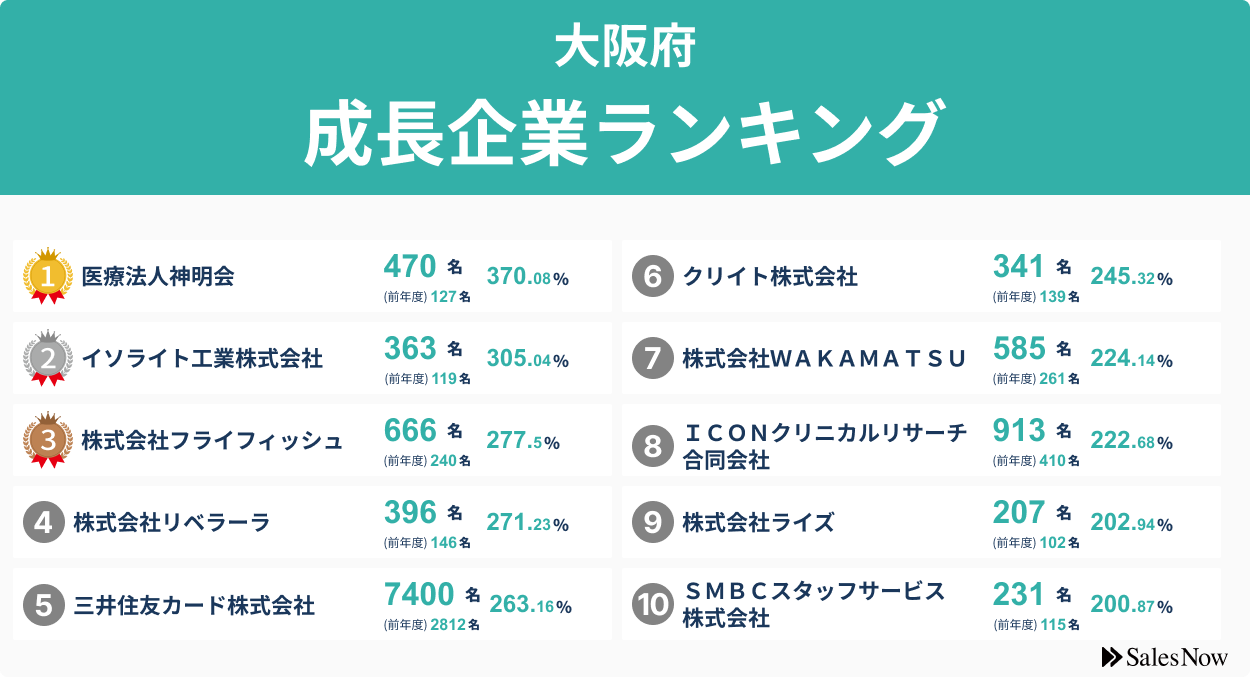 【大阪府】成長企業ランキングTOP50!/SalesNow DBレポート
