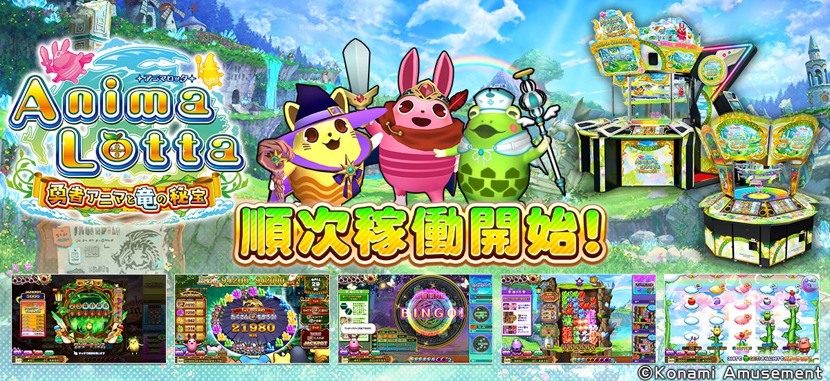 株式会社コナミアミューズメントは、アミューズメント施設向け大型マスメダルゲーム『アニマロッタ 勇者アニマと竜の秘宝(ユウシャアニマトリュウノヒホウ)』が1月8日(水)から全国のアミューズメント施設にて順次稼働を開始することをお知らせします。