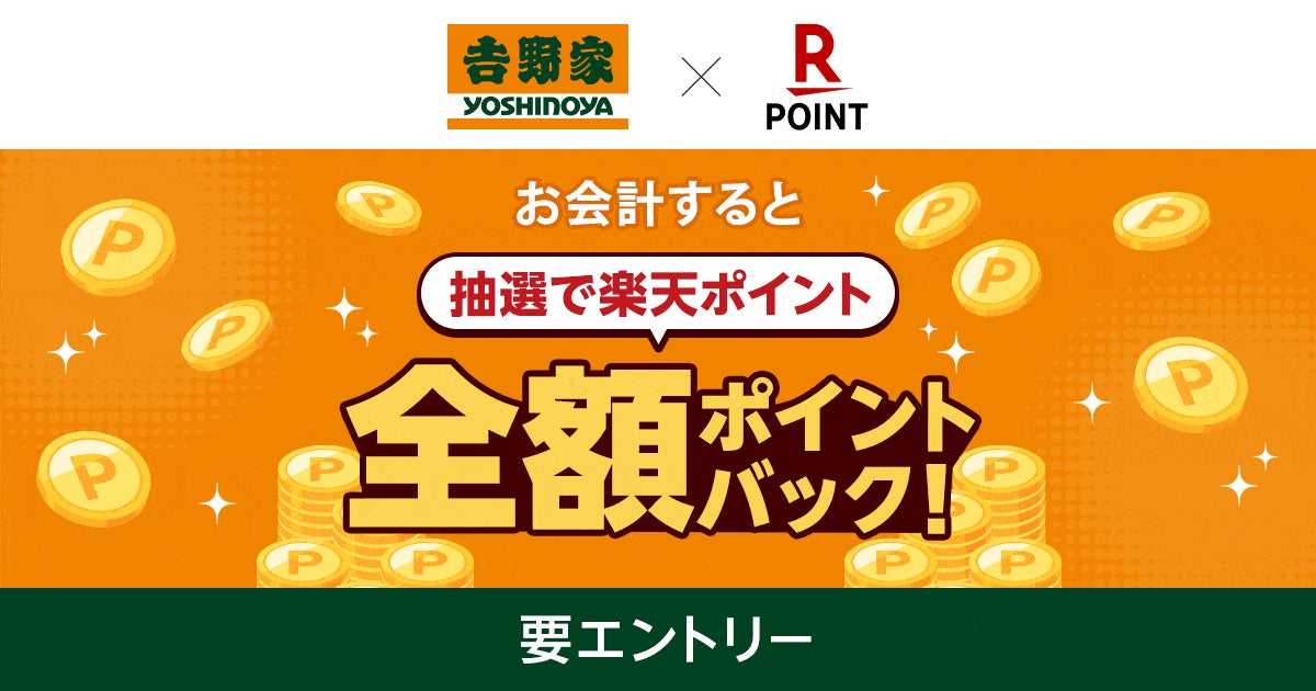 「楽天ポイントカード」、「吉野家」にて抽選で全額ポイントバックキャンペーンを実施!