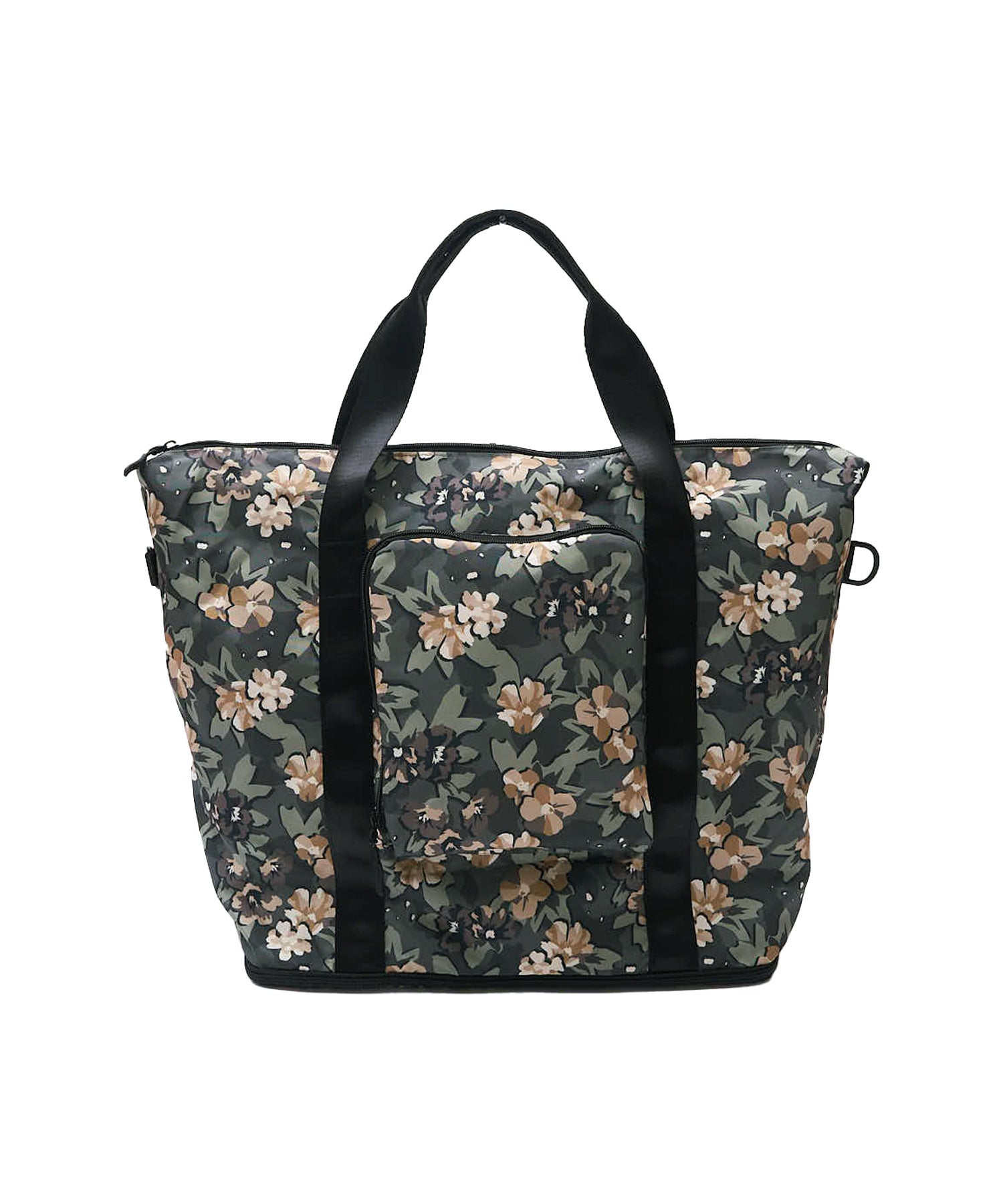 キャリーケースに固定できる仕様の大容量トートバッグ。