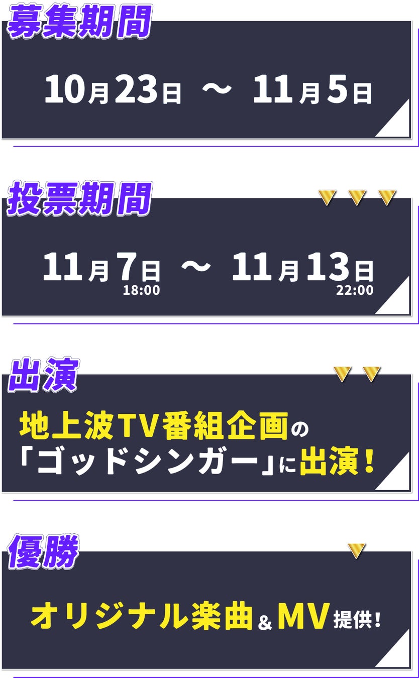 合格者は地上波バラエティー番組に出演!楽曲提供やMV制作権を獲得するチャンス!