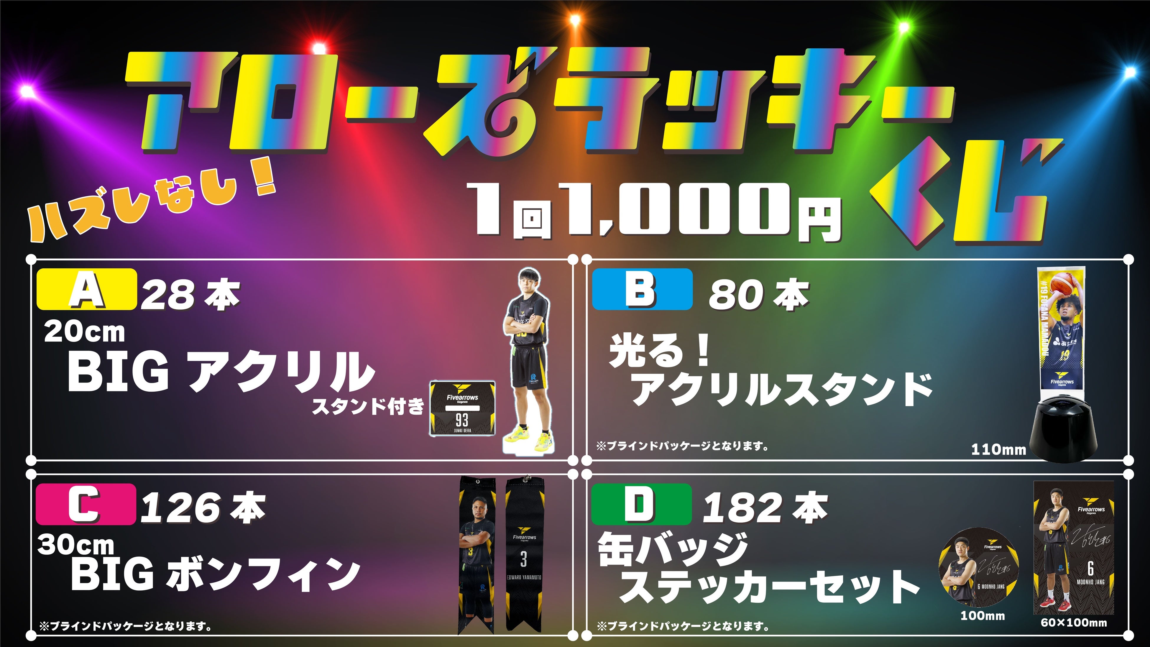 今節よりアローズラッキーくじが登場!今節は全4等すべてプレーヤーズアイテムとなっています!