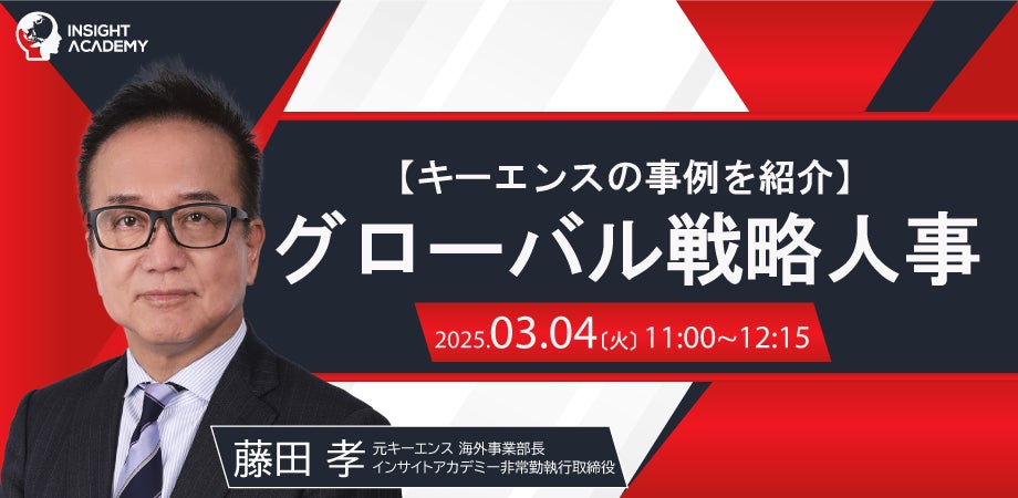 グローバル⼈材育成・研修業を⼿掛けるインサイトアカデミー株式会社(本社:東京都港区新橋、代表:金 珍燮)は、無料webセミナー「【キーエンスの事例を紹介】グローバル戦略人事」を2025年3月4日(火)11:00より開催します。