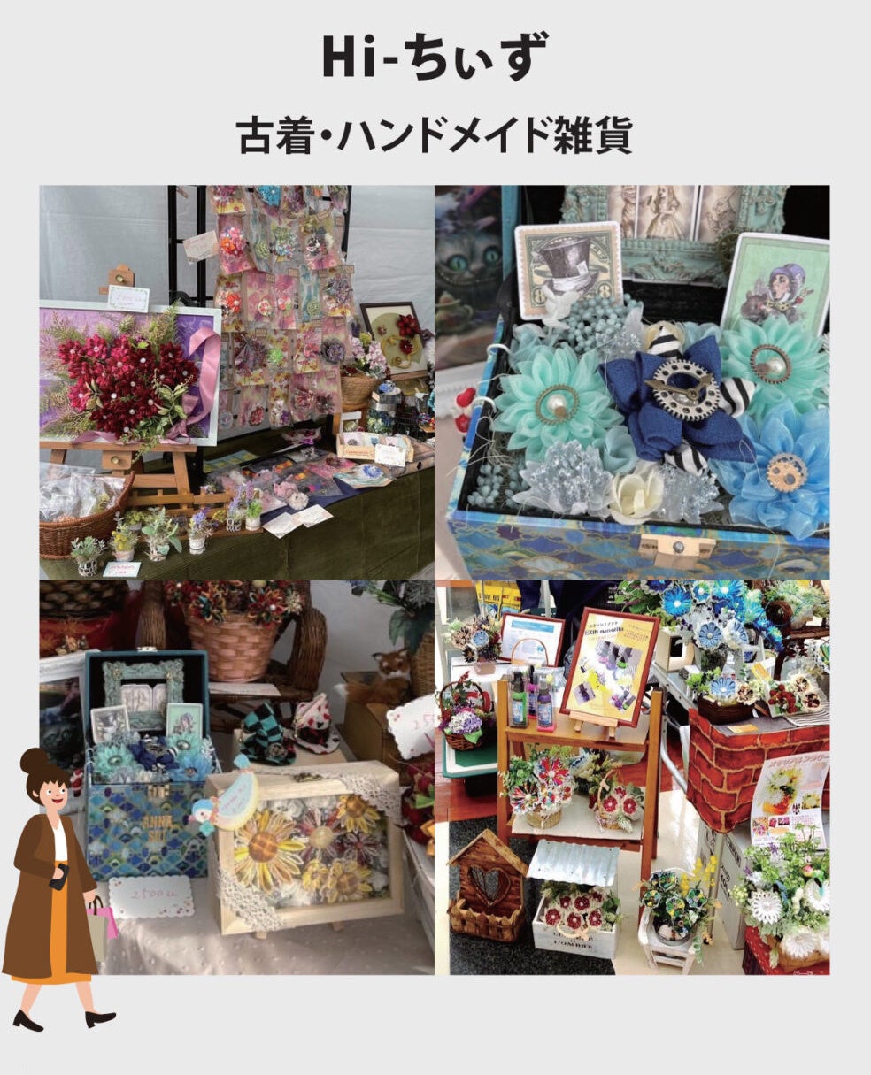 古着、ハンドメイド雑貨、デニムリメイク、アクセサリーなど、多彩なラインナップが揃います。