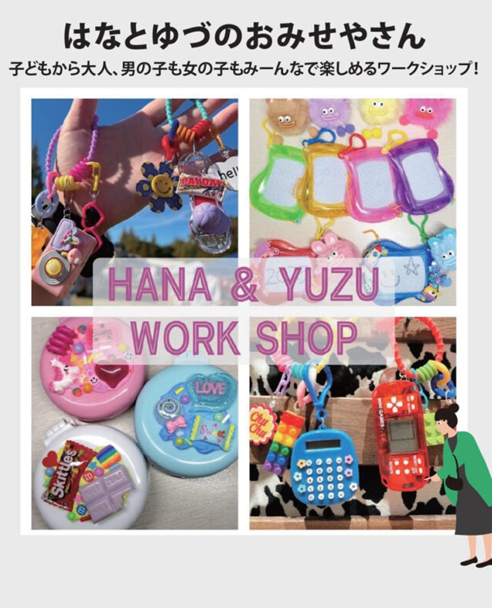 小さなお子様でも楽しんでもらえるようにお手伝いさせて頂きます!じゃらじゃらキーホルダーやデコホイップで自分だけのオリジナルグッズを作りに来てくださいね!可愛いかっこいいパーツたーーっくさん持っていきます!キッズアクセサリーなどの小物も販売しているので、お友達をお揃いにしたりお気に入りを見つけに来てくださいね!