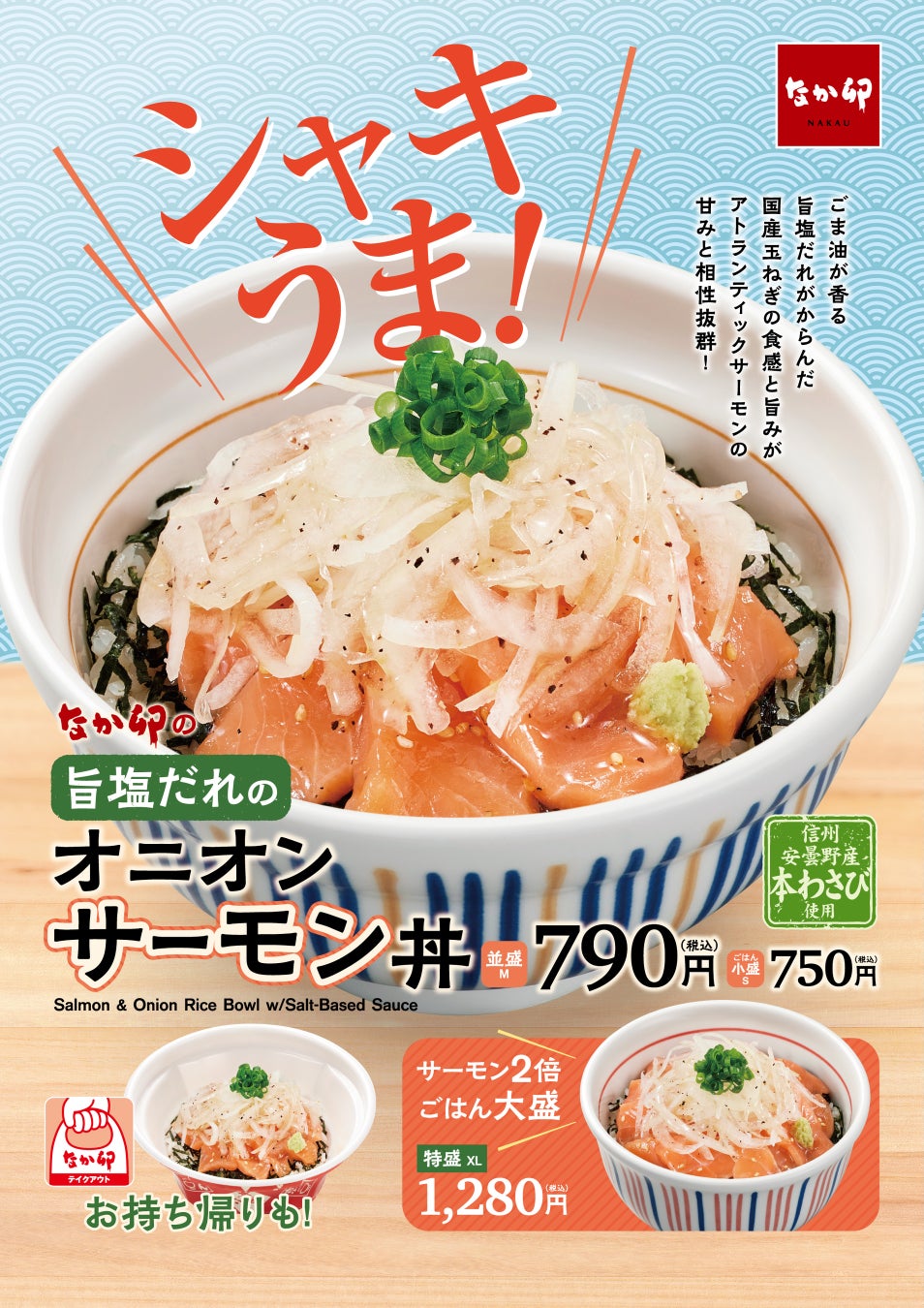 【なか卯】シャキうま!国産玉ねぎと特製旨塩だれを使ったこだわりの海鮮丼 爽やかな風味が初夏にぴったり!なか卯の「オニオンサーモン丼」販売!