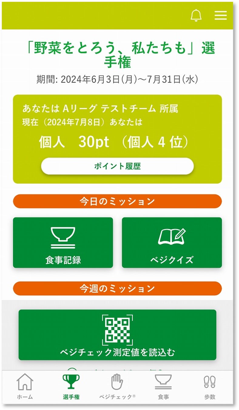 自社アプリを活用し、部署対抗で食事記録や野菜に関するクイズに取り組むことで、野菜摂取に向けた行動変容の促進を図っています。2025年には1,300名を超える従業員が参加するなど、高い参加率を達成しました。