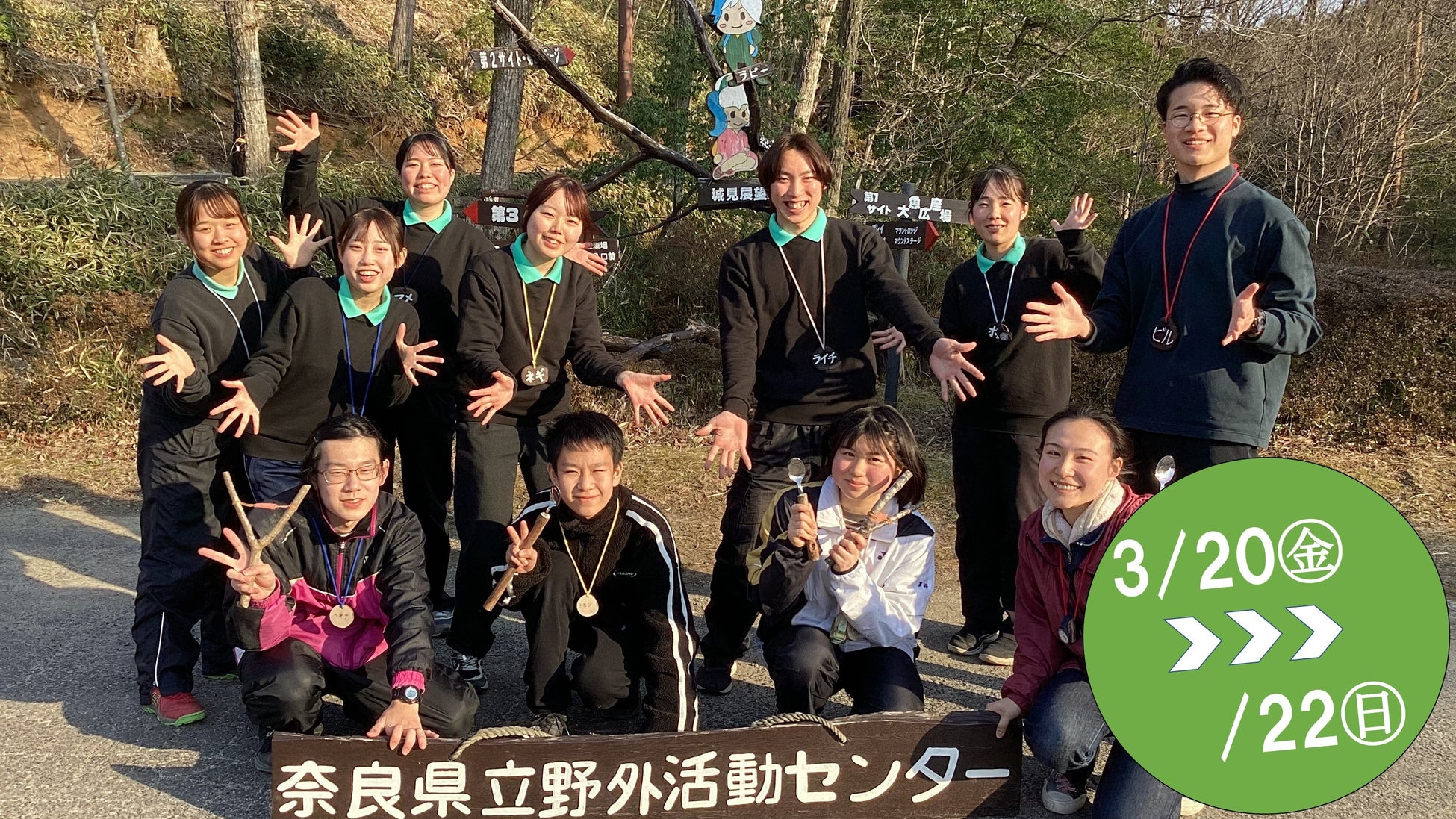 3月20日(金)~22日(日)に奈良県立野外活動センターにて中高生向け2泊3日のキャンプをします!