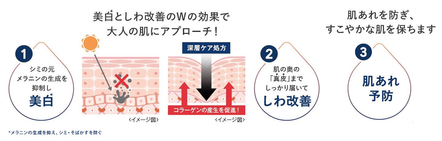 第1弾は化粧液&美容液 ナイアシンアミド×グリチルリチン酸2KのW有効成分配合で美白*2・しわ改善・肌あれ予防