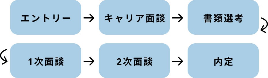 エントリーいただいた採用候補者と初回にキャリア面談を行い、採用候補者の志向性に応じて仕事内容や部署をアレンジします。(通常の選考ではキャリア面談なし)また、キャリア面談では採用候補者が気になっている部署・仕事内容を掌握する部門のマネージャーをアレンジいたします。