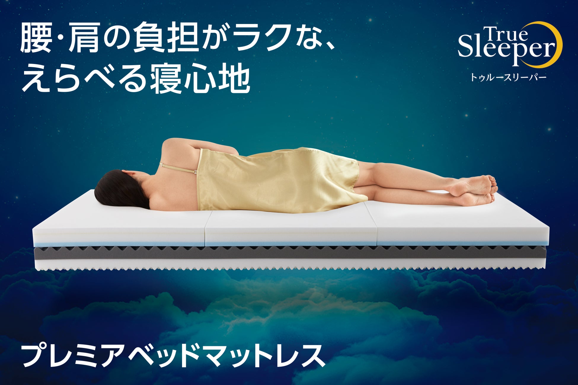 「トゥルースリーパー」は、ブランドスタート当初より、お使いの敷き寝具の上に敷くだけで睡眠時の腰や肩の負担を軽減するオーバーレイタイプのマットレスを主軸に展開してまいりました。多様化するお客様の眠りへのニーズにお応えするべく、新たなラインナップとして、上部3層と下部2層の独自の5層構造の「トゥルースリーパー プレミアベッドマットレス」を7月より発売し、ベッドマットレス市場に本格参入しました。今後も、お客様の至福の眠りの実現をサポートするべく、最新のテクノロジーを駆使し、高い寝心地と機能性を追求した商品の開発をおこなってまいります。