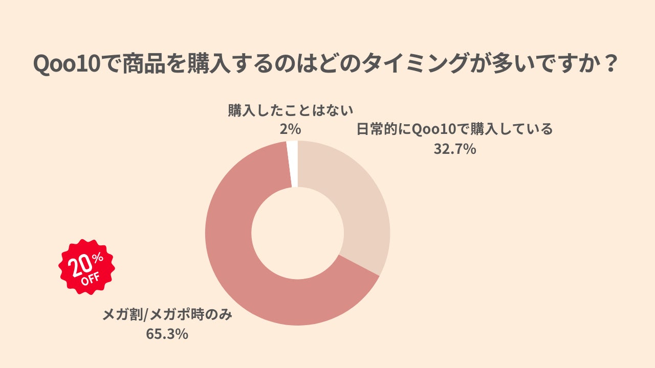 ③Qoo10で商品を購入するタイミングは、メガ割/メガポなどの「セール開催時のみ」で商品を購入する人が65.3%と最も多い結果となった。