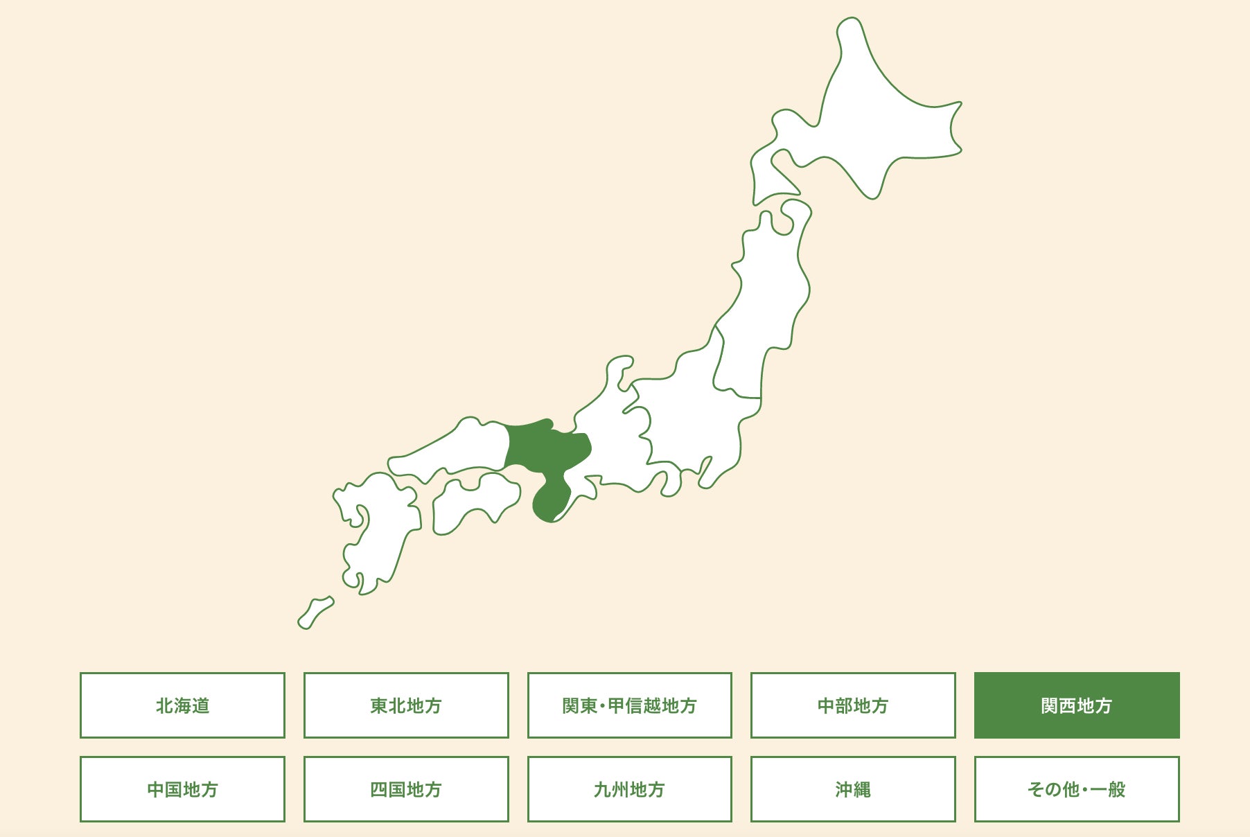 日本地図で地域を選ぶと、該当の地域に関するレッスン、出身講師が表示されます。