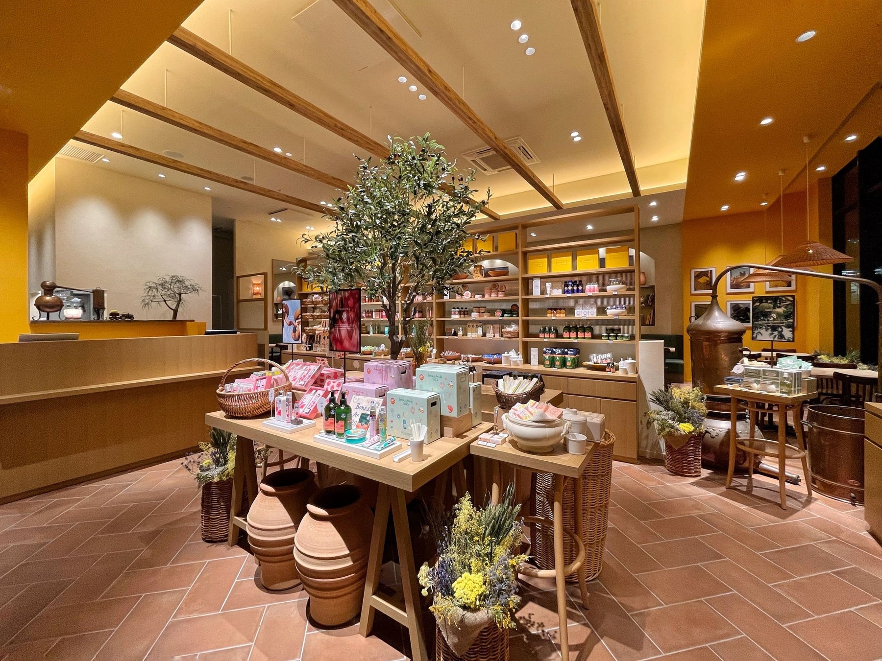 また店舗内にはプロヴァンスの風景や製品の原材料となる植物で構成されたフォトライブラリーウォールや、プロヴァンスの象徴であるオリーブツリー、テラコッタなど自然由来の素材を使用した店内内装で、プロヴァンスへ旅したような気分でお買い物を楽しんでいただけます。