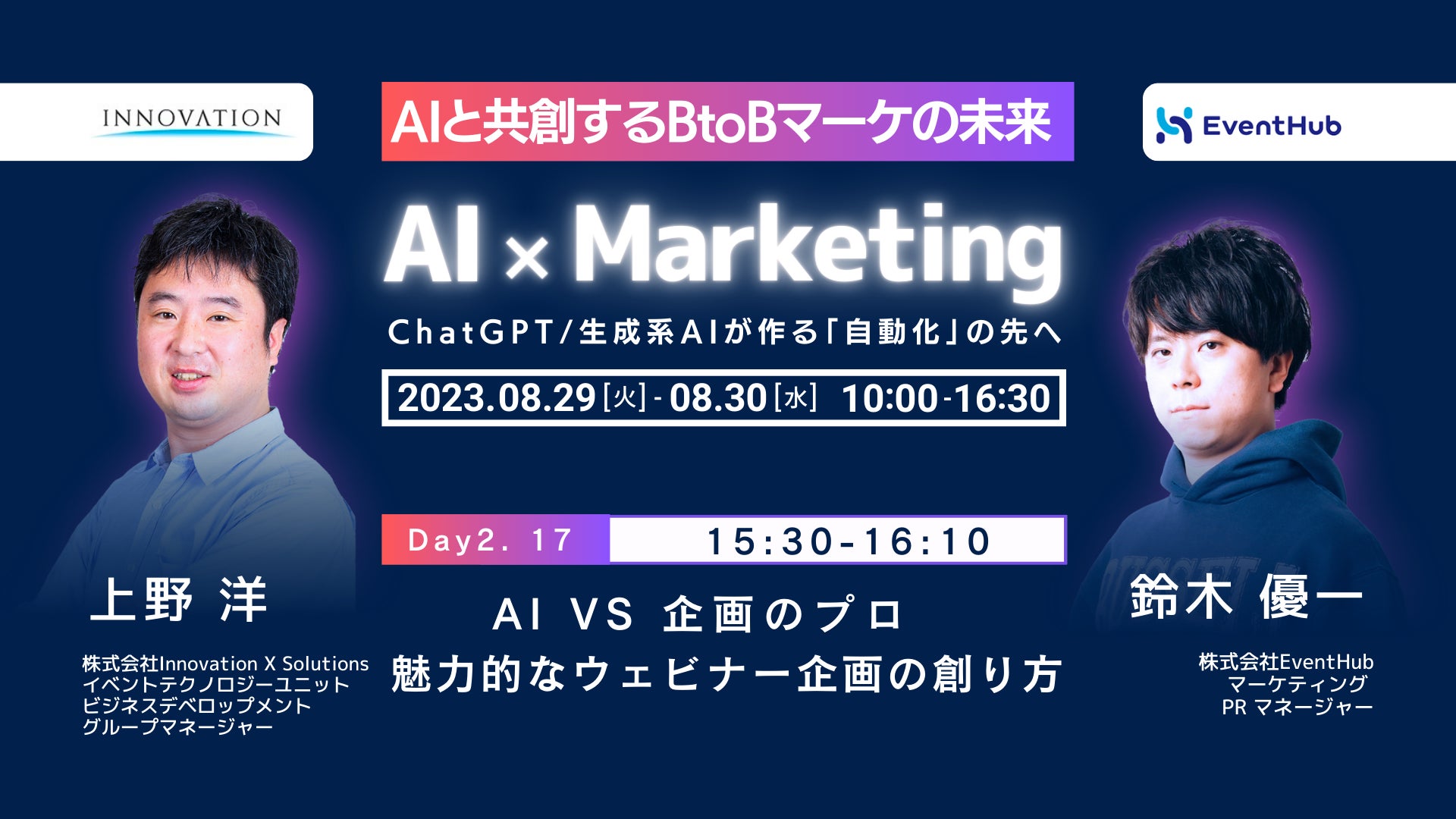 当社は、8月30日(水)15:30〜より、株式会社EventHubと「AI VS 企画のプロ 魅力的なウェビナー企画の創り方」をテーマに登壇します。