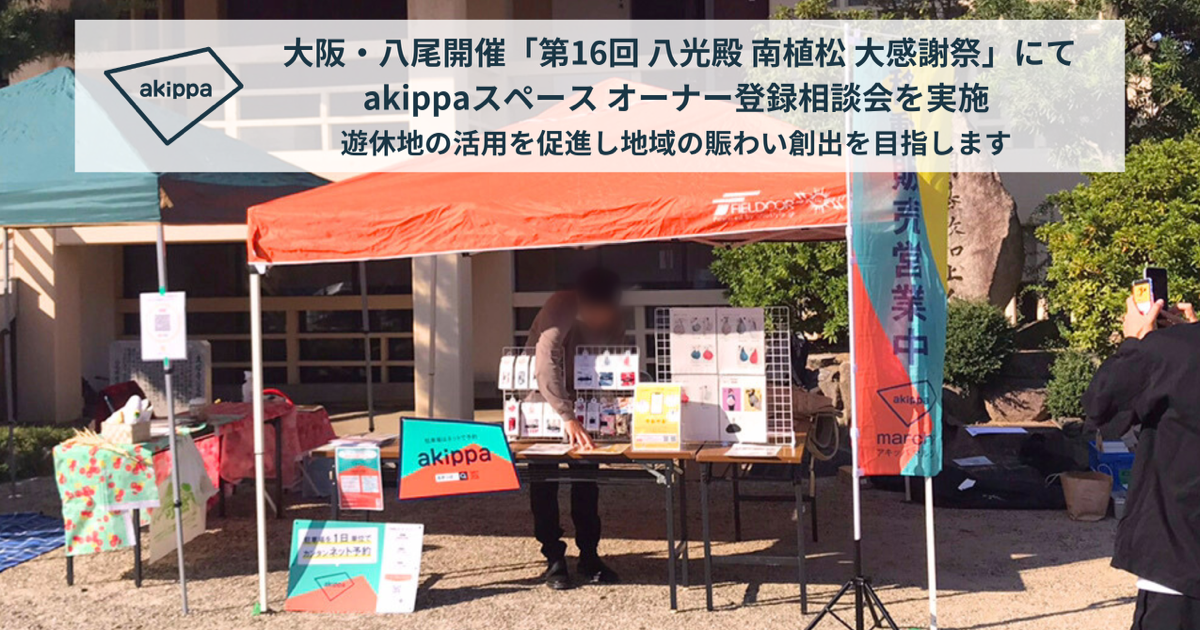 演歌歌手・天童よしみさんも出演する大阪・八尾開催の「第16回 八光殿 南植松 大感謝祭」にてakippaスペースのオーナー登録相談会を実施、遊休地の活用を促進し地域の賑わい創出を目指します