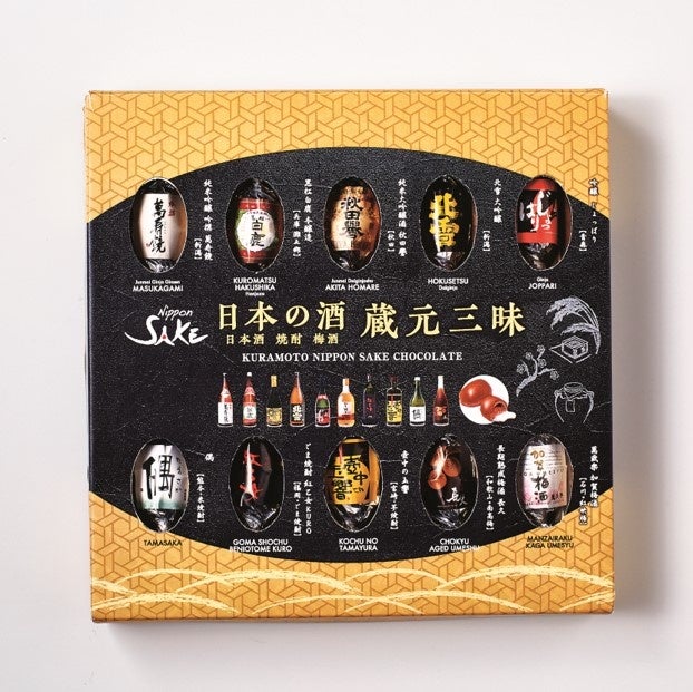 ■特長:昨年好評いただいた「日本のお酒を使用したチョコレート」がリニューアルして登場。個性豊かな日本酒、梅酒、焼酎を10種類贅沢に食べ比べできます。まるで日本の蔵元をめぐっているかのような気分を味わえる商品です。