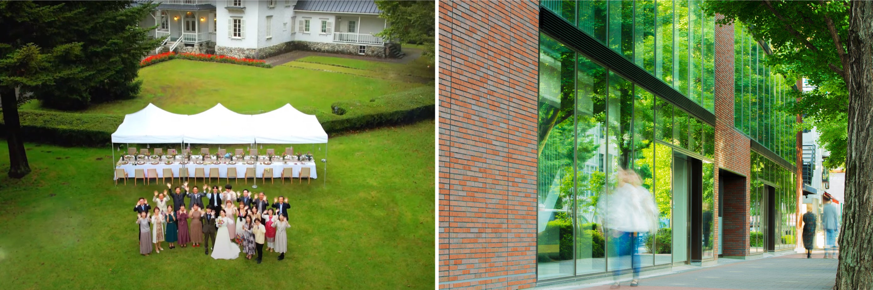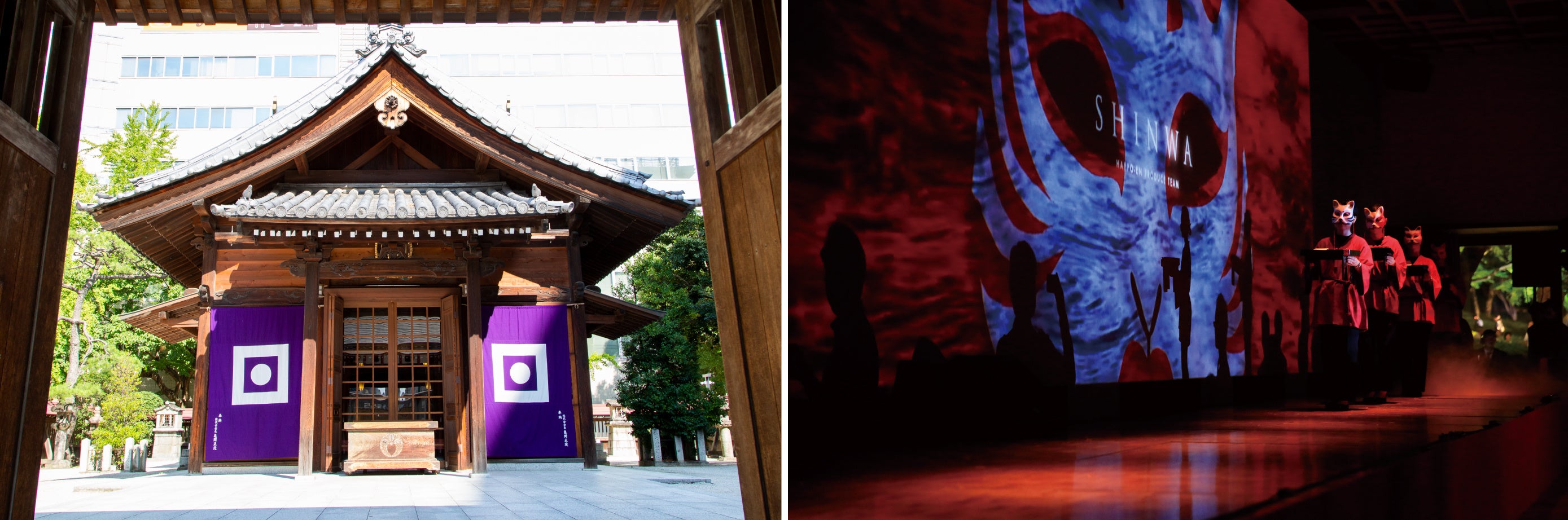 (左)ロゴ/(真ん中)警固神社/(右)八芳園の過去のイベントプロデュースの様子