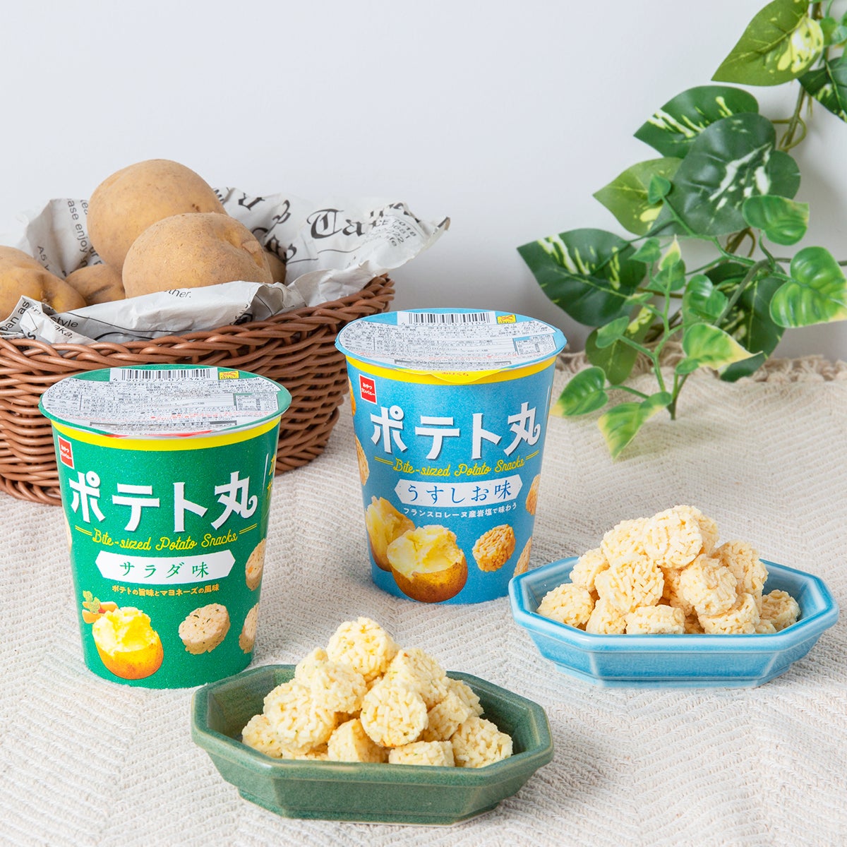 ひとくちサイズで食べやすいコロコロッと丸いカタチが生む、カリッサクッとした軽快な食感、口の中でホロホロッとほどける独特の食感変化を楽しめるポテト丸は、ひとくちで手軽にリフレッシュできる小粋な新感覚ポテトスナック菓子。日常のホッとひと息つきたいリフレッシュタイムに、ポテトの旨みとともにマヨネーズの風味が広がる「ポテト丸(サラダ味)」を是非、お楽しみください。