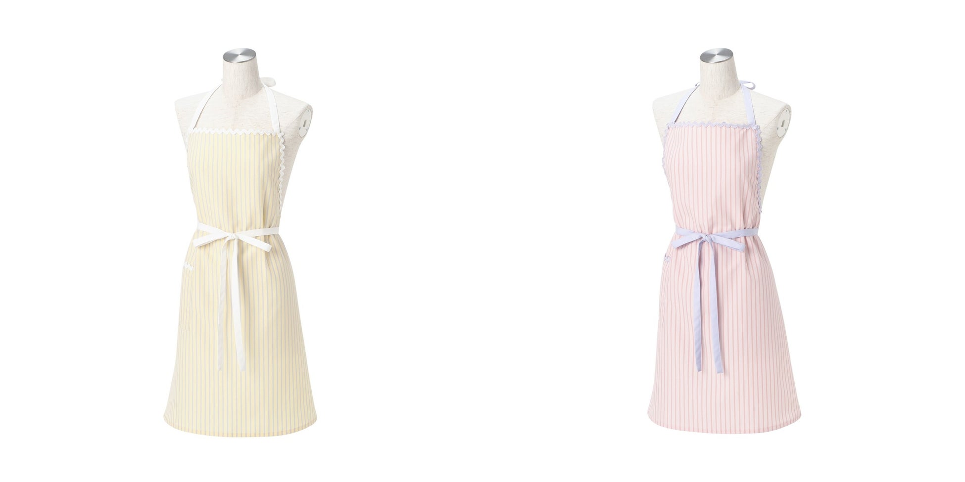 トレンド感のあるウェーブのモチーフを胸元にあしらったエプロンです。バイカラーで仕上げたウェーブとストライプがポップな印象で、お料理中の気分をあげてくれます。