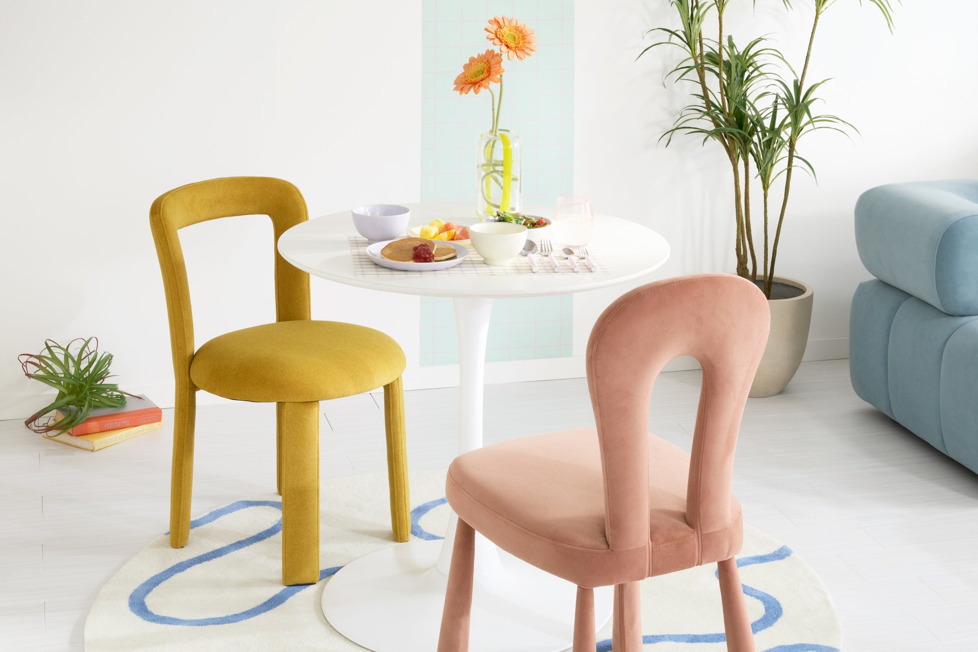 ダイニングをカラフルに彩るチェアやラグ、カラーを揃えてコーディネートを楽しめるテーブルウェアをラインアップ。