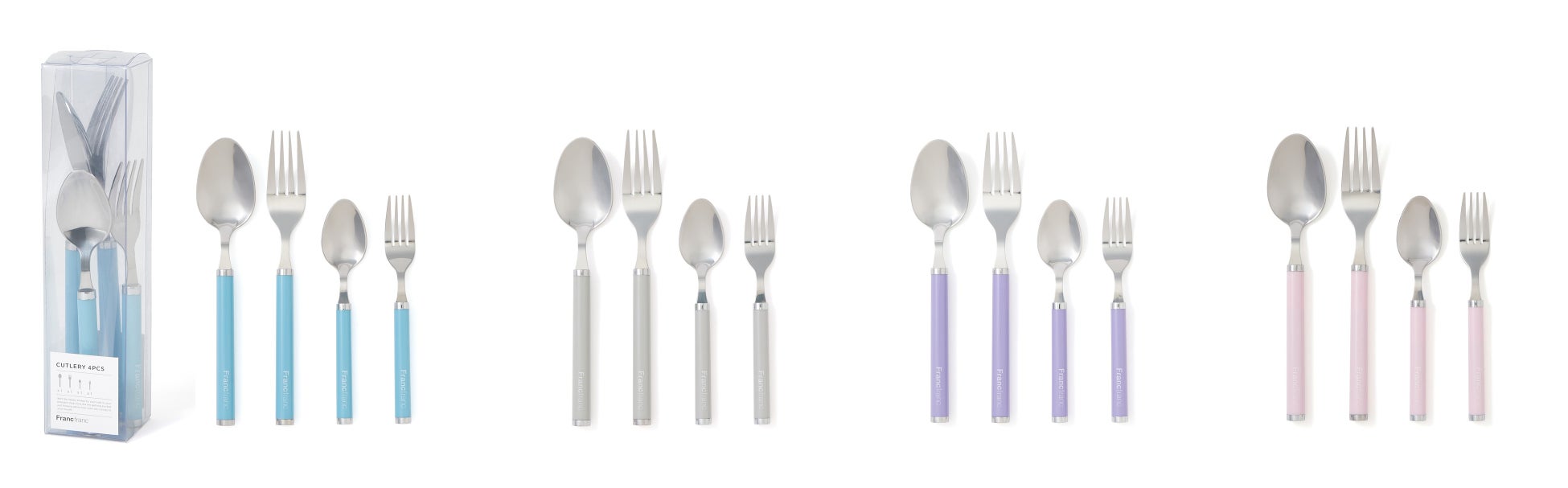 ひとり暮らしに必要なカトラリーを揃えたカトラリー4本セットです。「オルディ」シリーズや他の食器とカラーを合わせて開発しているので、組み合わせることでカラフルで楽しいテーブルコーディネートが完成します。