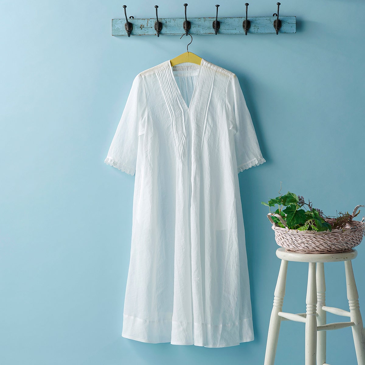 シャリ感、透明感のある麻を使用したオリジナルデザインのワンピース。袖口のタックはフランスのビンテージ素材を使用し、ロマンティックな気分になれる一着です。