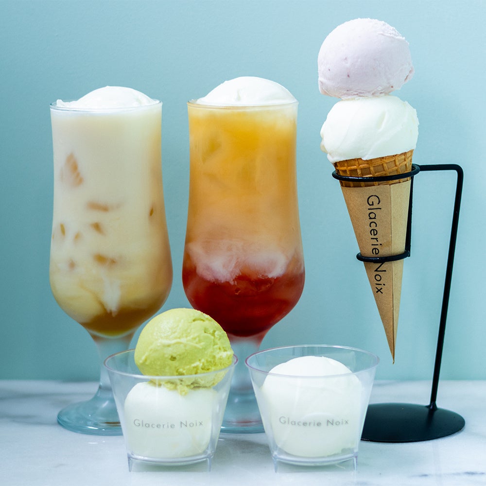 福岡県のアイスクリーム専門店「グラスリーノア」。果実の香りが華やかに広がるすっきりとした味わいのフルーツフロートティーや、農家直送の果実を使った季節限定アイスクリームが豊富に登場します。