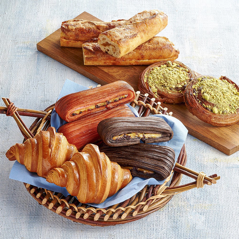明太フランス〈各日60点限り〉562円、ピスタチオのエスカルゴ〈各日40点限り〉540円、パンスイス(フランボワーズ)〈各日40点限り〉605円、パンスイス(カカオ)〈各日40点限り〉562円、クロワッサン〈各日300点限り〉454円(すべて日本製)
