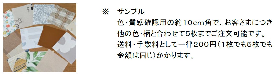 当サイトでは、できる限りテーブルクロスを実際にお客さまのご家庭でご使用いただくイメージが湧くよう、画像を豊富に用意しており、さらに一部の商品にはサンプル※を用意しています。