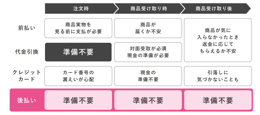 図:他決済と比較した後払いの特徴
