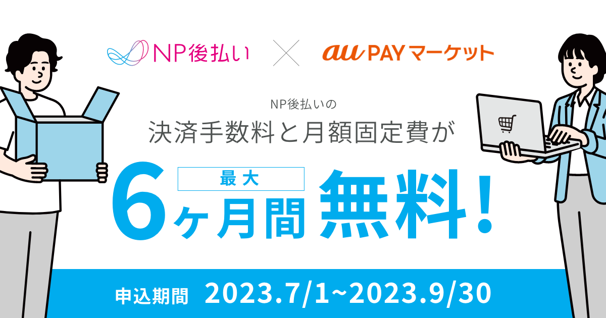 au PAY マーケットにて、NP後払いがお得な導入キャンペーンを実施!期間限定で決済手数料と月額固定費が無料に!