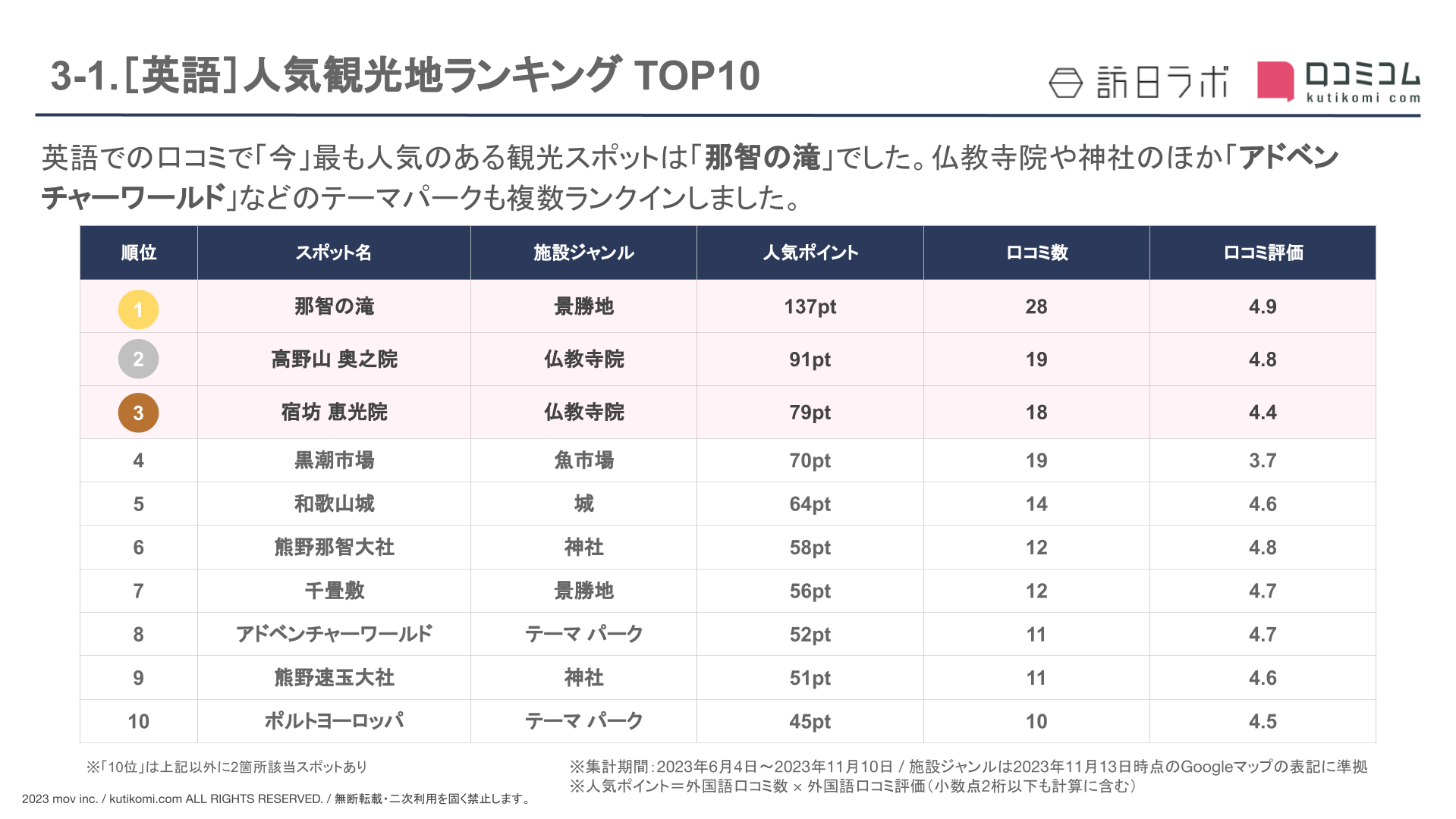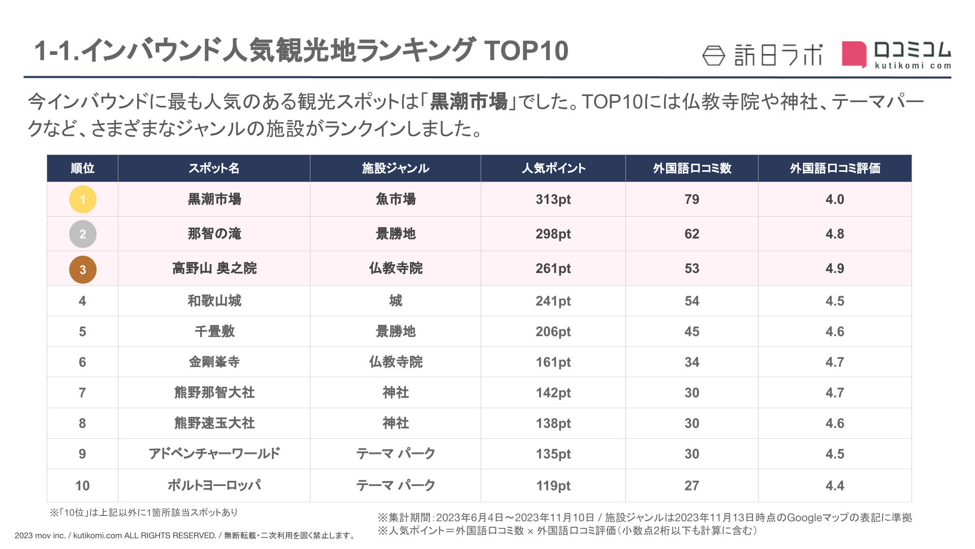 【独自調査】インバウンド人気観光地ランキング和歌山編:コロナ後 最新の訪日客の支持を集めたスポットTOP10を発表 #インバウンドMEO