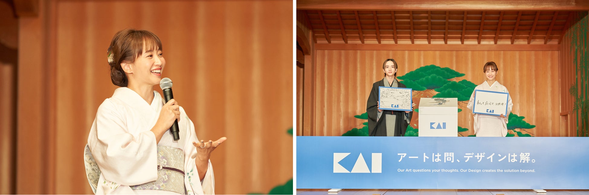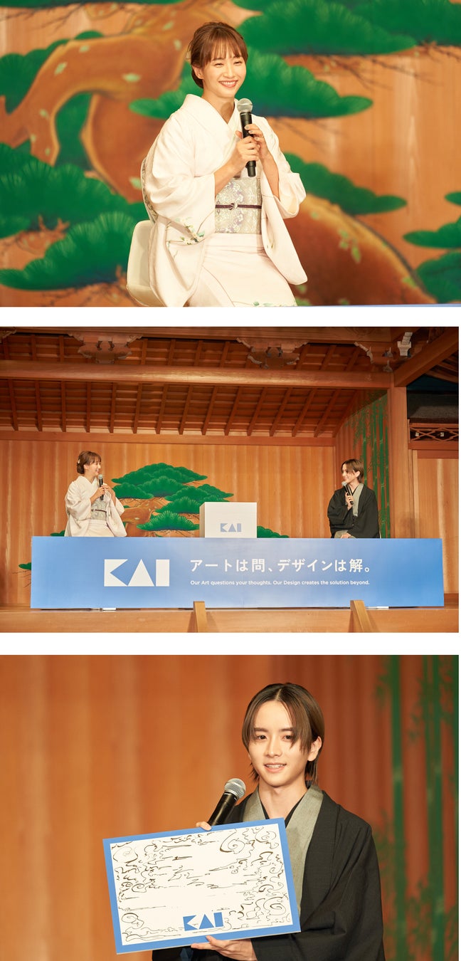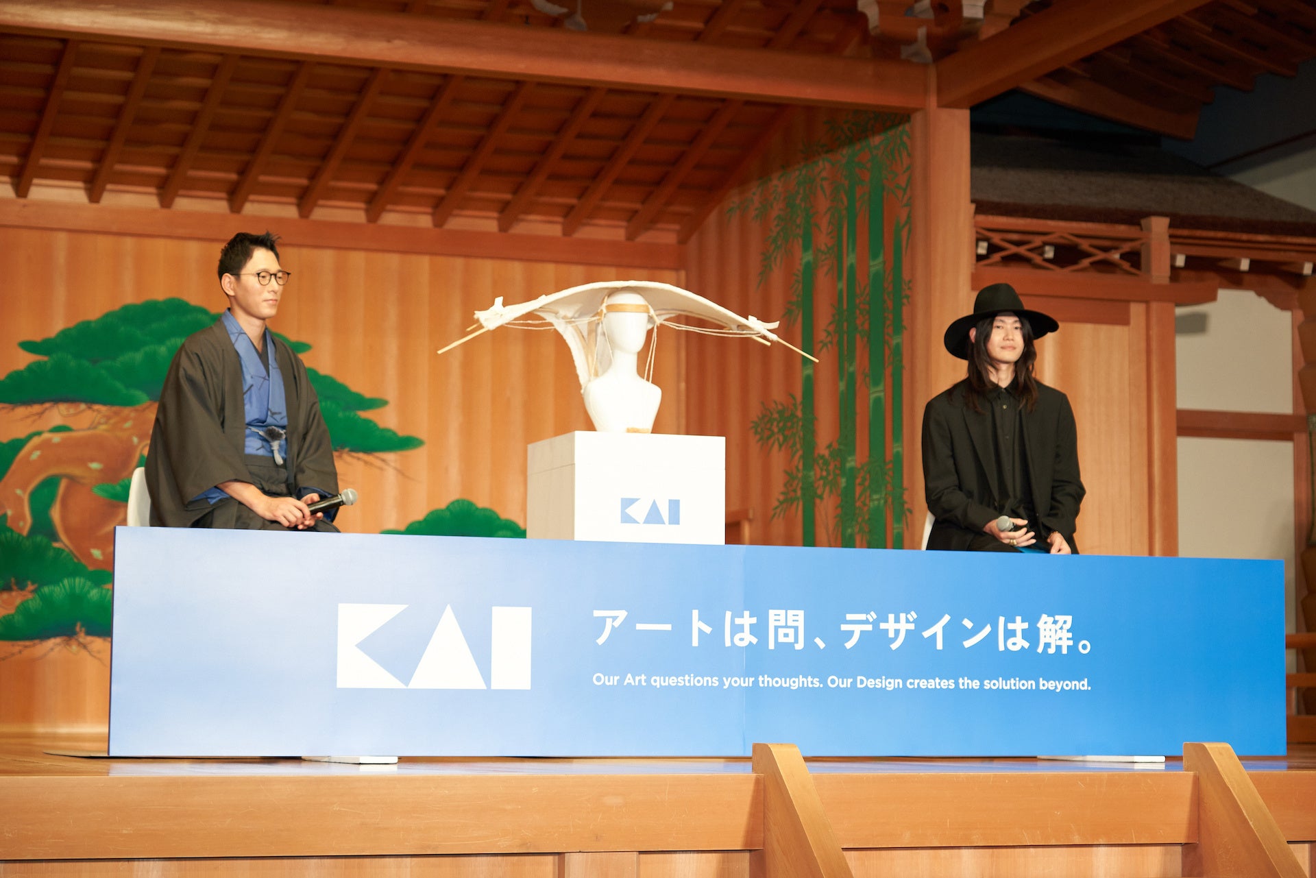 イベントでは今年の「いい刃の日」のテーマである「アートは問、デザインは解。」におけるコンセプトと展示のご紹介、そして貝印の人気高級包丁ブランド「旬」の1,000万丁突破、ならびに関孫六 最高峰シリーズ「要」の発売を発表。さらに、今年初開催となった帽子デザインコンテスト「KAI Hat&Head-piece Competition」の最優秀賞発表に加え、日爪さんと共同開発を行った 「縫製ハサミ」、そして板垣さん考案 「板垣李光人コラボ〈マルチユーズブラシ〉」のお披露目と発売発表を行いました。