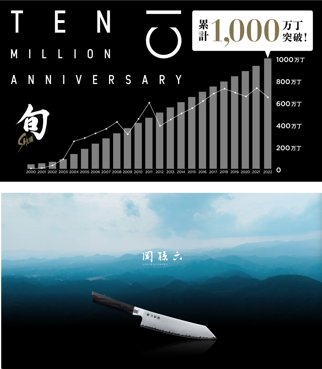 「旬」は2000年に欧米で発売を開始して以来、その機能性や美しさに対して世界中のお客様から好評をいただいてまいりました。人気のシェフ・料理研究家から一般のお客様まで、幅広い層から厚い支持を受けています。また今回1,000万丁突破を記念し、来年秋には、1,000万丁突破記念モデルの発売も予定しております。