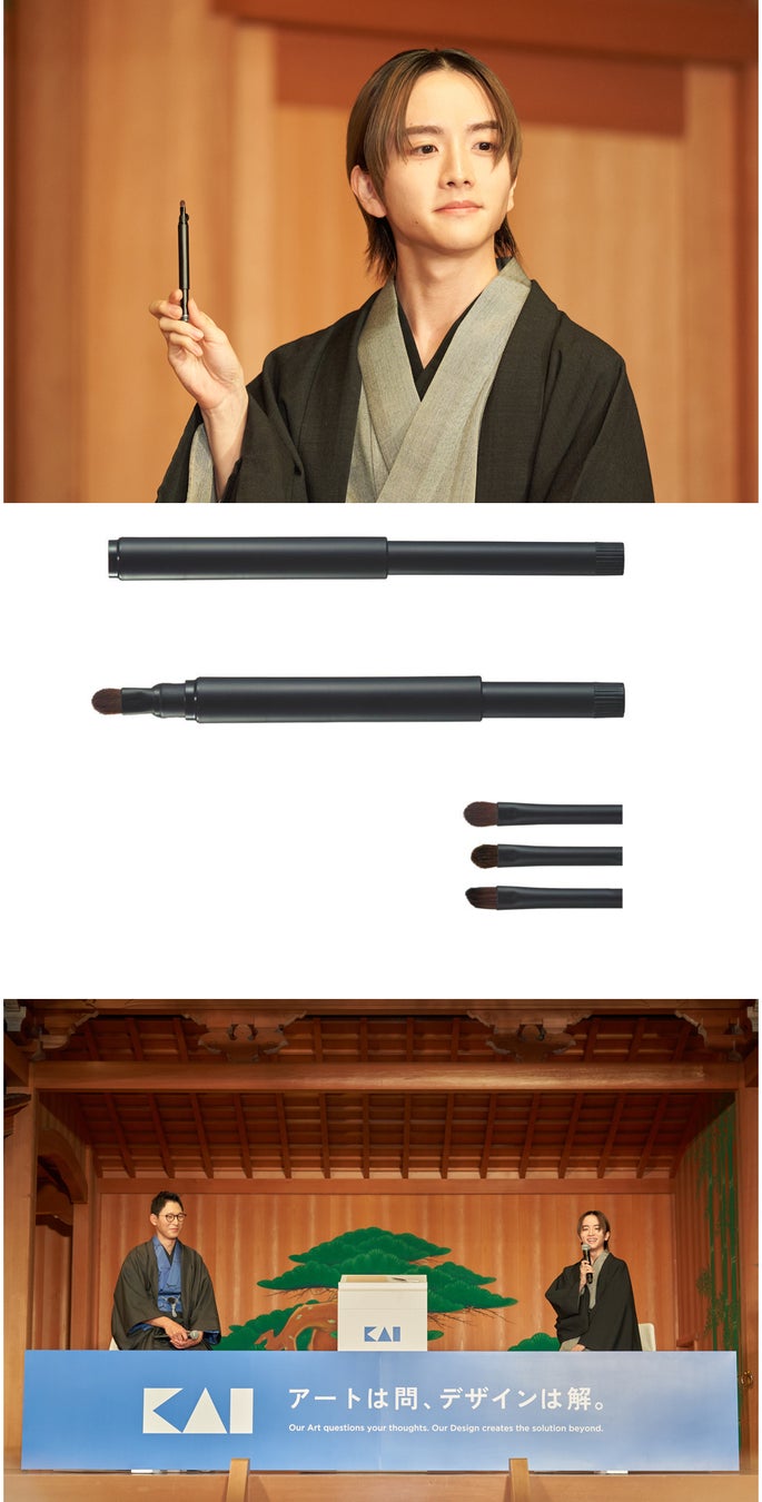 続いて俳優の板垣李光人さんにご登壇いただき、2021年の「いい刃の日」PRイベントで板垣さんが発表した「あったらいいなと思う”ビューティーツール”」のアイデアが実際に商品化となり、2023年春より、貝印からカードリッジ式のメイクブラシ〈マルチユーズブラシ〉として発売されることが発表されました。