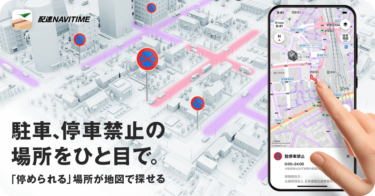 『配達NAVITIME』、「駐車禁止・駐停車禁止」場所を地図上に表示