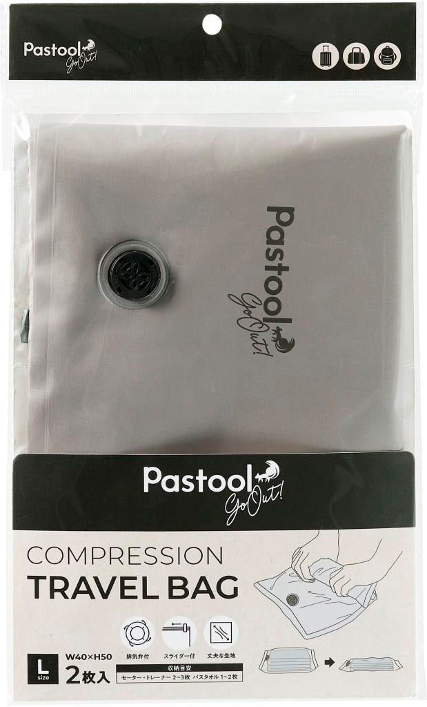 くるくる巻いてスピード圧縮!「Pastool go outトラベル衣類圧縮袋 2枚組」