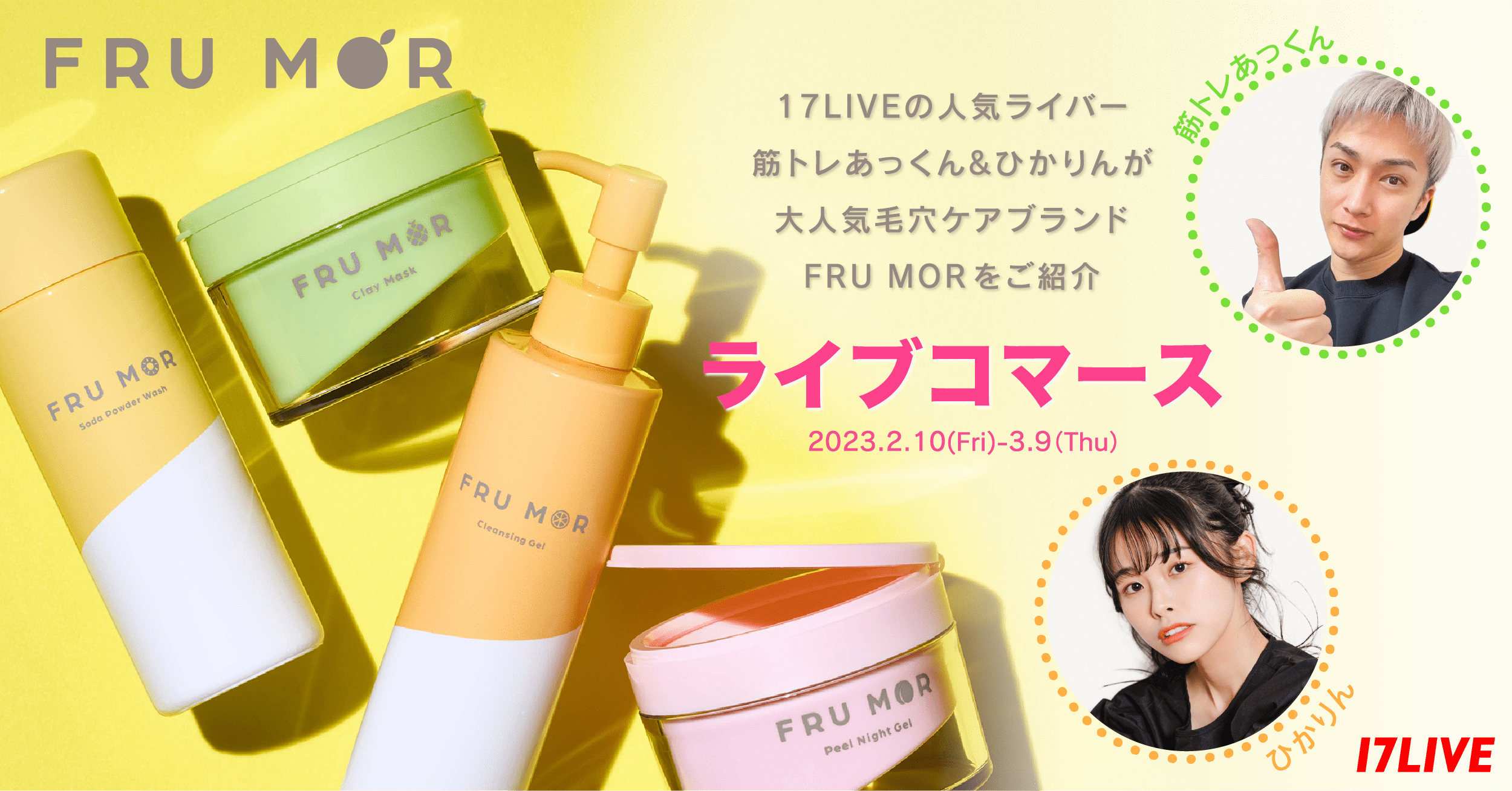 17LIVE株式会社(東京都港区、代表取締役:アレックス・レン、URL:https://jp.17.live/)が運営する日本最大級のライブ配信アプリ「17LIVE(イチナナ)」では、当アプリで活躍する2名のライバーがライブ配信を活用し、msh株式会社(東京都渋谷区、代表:藤田 智美、URL:https://www.msh-labo.com/、以下「msh」)が展開するスキンケアブランドである「FRU MOR(フルモア)」の初となるライブコマース配信を、2023年2月10日(金)〜3月9日(木)の期間で実施することが決定しましたので、お知らせいたします。