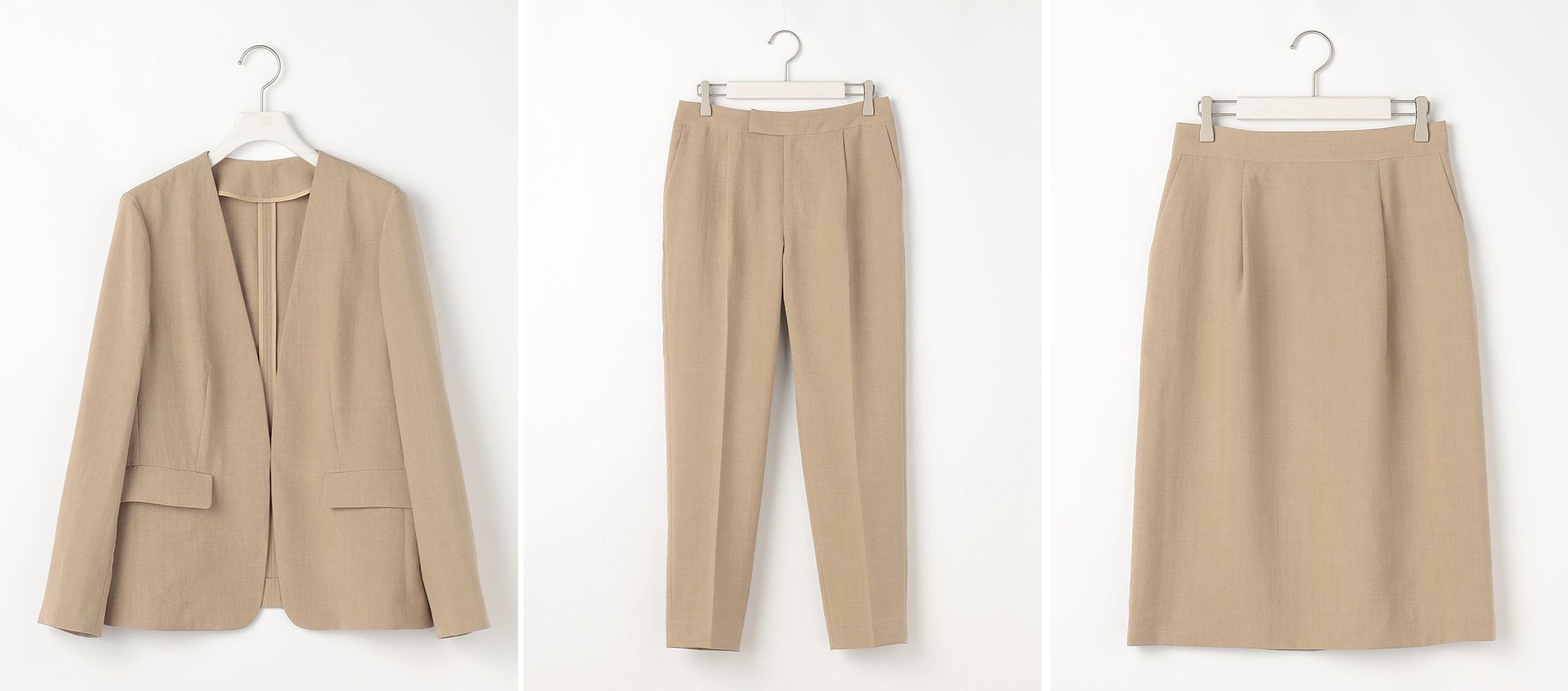 価格:ジャケット17,600円、スカート9,900円 パンツ11,000円 (すべて税込)
