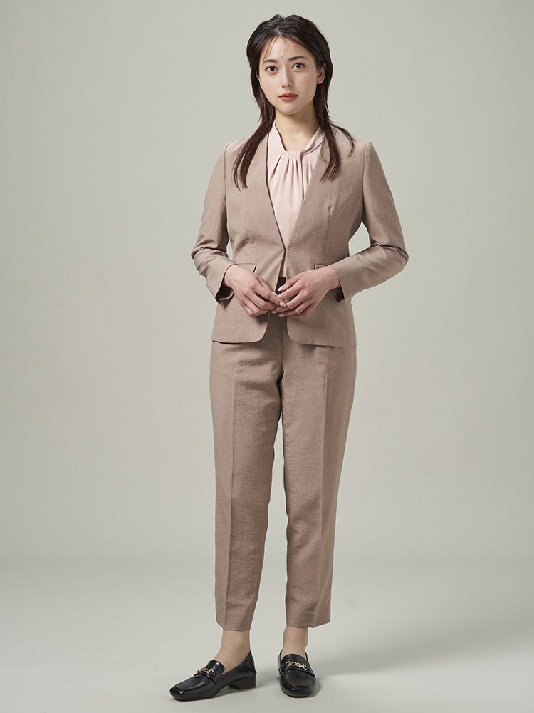 ■夏季にぴったりのリネンライクな肌触りとすっきりしたシルエットが爽やかな印象のセットアップ