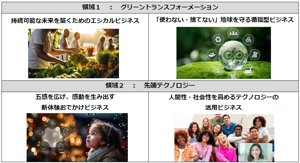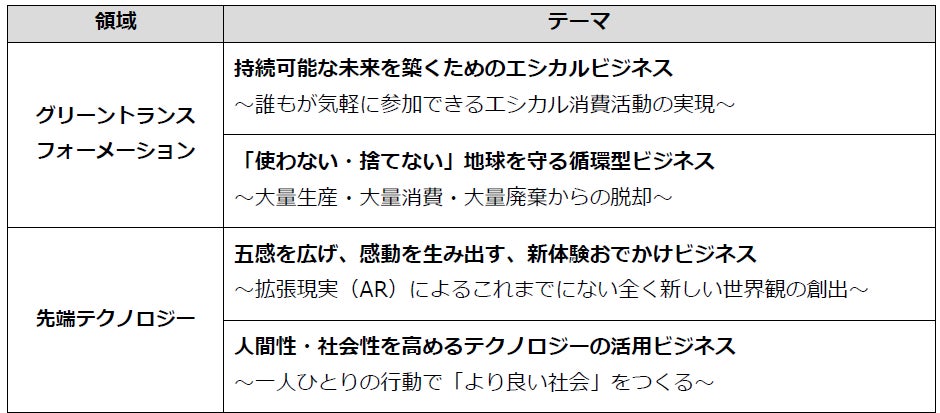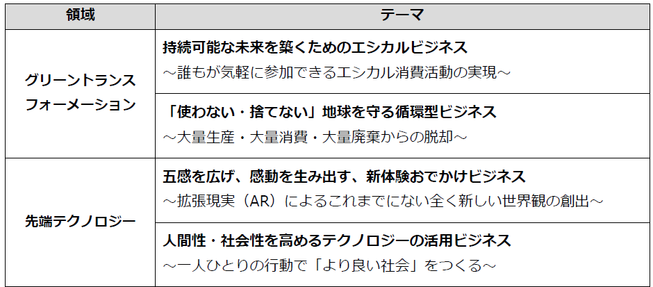 社会課題・未来社会の創造に関する2領域4テーマに関して、共創アイデアをNTT西日本と一緒に検討・検証いただける企業を募集します。