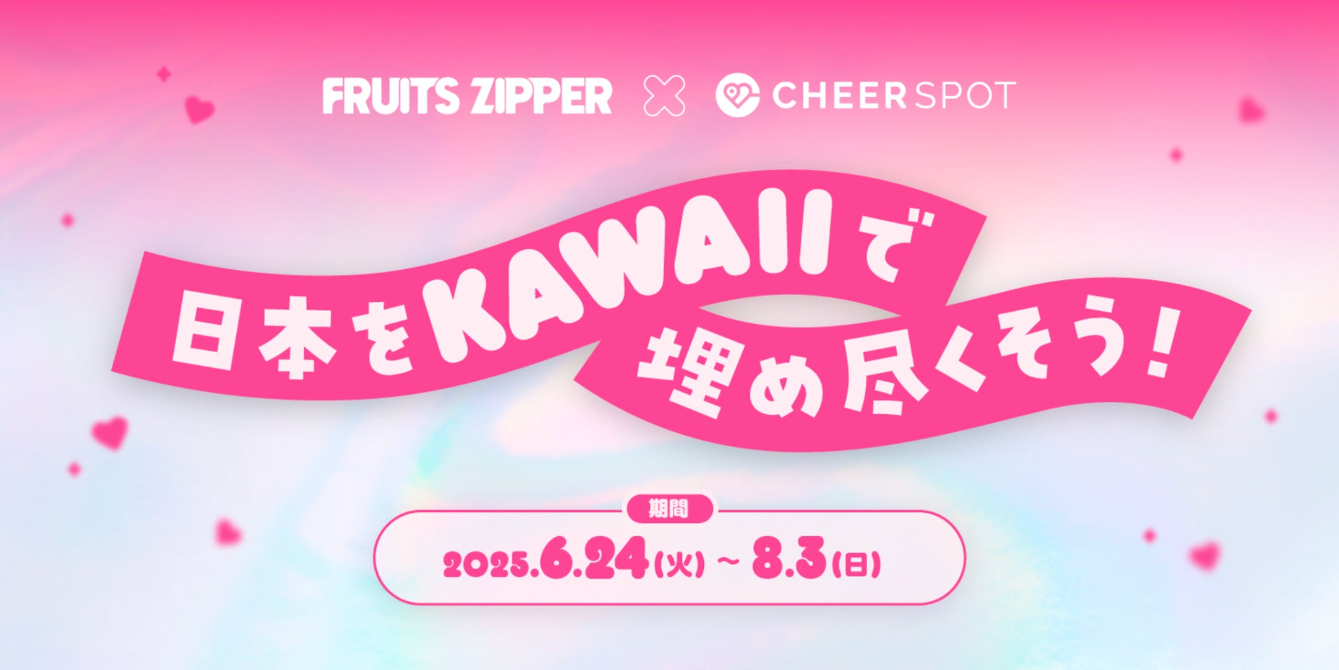 日本中に「FRUITS ZIPPER」の“KAWAIIパワー”を広げるプロジェクトです。「CheerSPOT」から「FURUITS ZIPPER」を応援することで、全国にある「ChargeSPOT」のデジタルサイネージを「FRUITS ZIPPER」の“Cheer(応援)”で埋め尽くします。